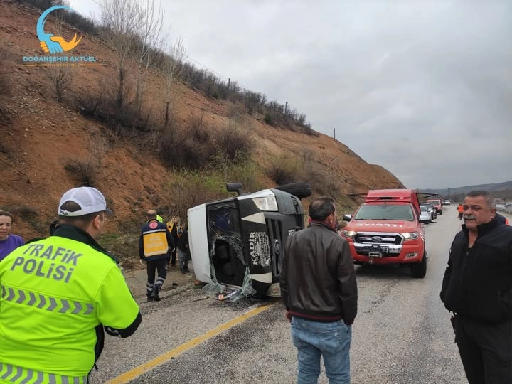 Edinilen bilgiye göre Malatya Adıyaman karayolunda Doğanşehir İlçesi Suçatı mevkiinde Adıyaman istikametinden Malatya istikametine seyir halinde olan A.Ş idaresindeki 02 J 4026 plakalı minibüs havanın yağışlı olmasından dolayı direksiyon hakimiyetini kaybetmesi sonucu yol kenarında şarampole devrildi. Meydana gelen kazada şoför A.Ş, H.C, A.C, Z.C, Ş.C, yaralandı. Çevredekilerin 112 ihbarı üzerine olay yerine sağlık ve Büyükşehir itfaiye ekipleri sevk edildi. Yaralılardan Z.C. Büyükşehir İtfaiye ekipleri tarafından sıkıştığı yerden çıkartılarak sağlık ekiplerine teslim edildi.