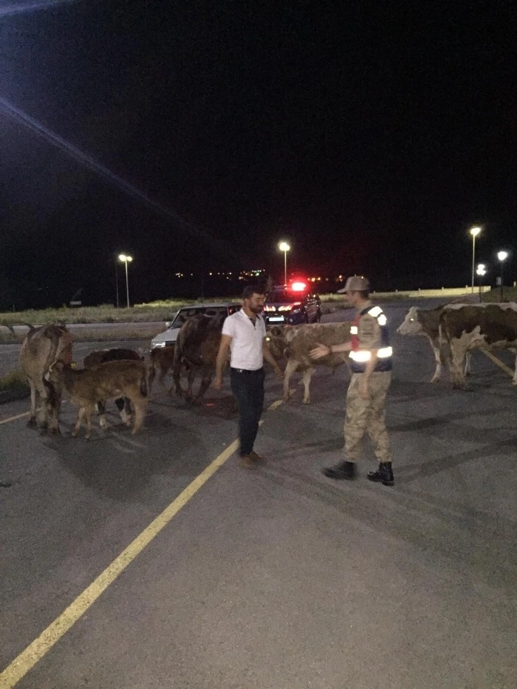 Malatya’da bir çiftçiye ait kaybolan 9 adet büyükbaş hayvan, jandarma tarafından bulunarak sahibine teslim edildi.Battalgazi ilçesi Üzümlü Mahallesinde Bayram Toksöz’e ait 9 adet büyükbaş hayvan, otlatılmak için bırakıldığı arazide kaybolunca durum jandarma ekiplerine bildirildi.Battalgazi İlçe Jandarma Komutanlığı ekipleri, yaptıkları çalışma ile gece yarısı kaybolan hayvanları bölgeye 9 kilometre uzaklıkta buldu. Hayvanlarına kavuşan çiftçi jandarmaya teşekkür etti.