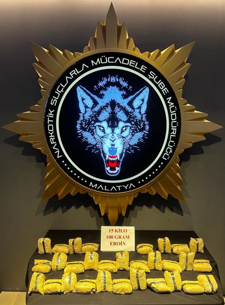 Malatya Narkotik Suçlarla Mücadele Şube Müdürlüğünce “Uyuşturucu Madde İmal ve Ticareti” suçlarına yönelik yapılan çalışmalar kapsamında B.H. isimli şahsın yüklü miktarda uyuşturucuyu doğu illerinden batı illerine sevk edeceği bilgisi elde edilmiş ve narkotik ekipleri tarafından şahıs Şanlıurfa ilinde yakalanmış, şahsın sevk ve idaresindeki araçta yapılan aramada benzin deposuna zulalanmış şekilde 30 paket halinde toplam 15 kilo 100 gr eroin ele geçirilmiş ve gözaltına alınıp ilimize getirilen şahıs sevk edildiği adli makamlarca tutuklanmıştır.