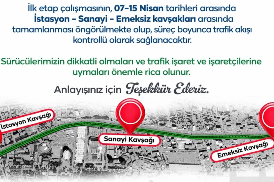 Büyükşehir Belediyesinden yapılan açıklamada "Bu kapsamda Malatya Büyükşehir Belediyesi Beylerderesi Viyadüğü ile Çöşnük kavşağı güzergâhında iyileştirme ve yenileme çalışmaları gerçekleştirecektir. Çevreyolu yan yolları yenileme ve iyileştirme çalışmaları kapsamında ilk etap çalışmaları 07-15 Nisan tarihleri arasında İstasyon – Sanayi - Emeksiz kavşakları arasında yapılması planlanmakta olup, çalışmalar süresince trafik akışı kontrollü olarak sağlanacaktır. Sürücülerimizin dikkatli olmaları ve trafik işaret ve işaretçilerine uymaları önemle rica olunur. Mevcut çalışmanın tamamlanmasına müteakip, yapılması planlanan diğer etaplar için kamuoyu bilgilendirecek olup, sabrınız ve anlayışınız için teşekkür ederiz" denildi.