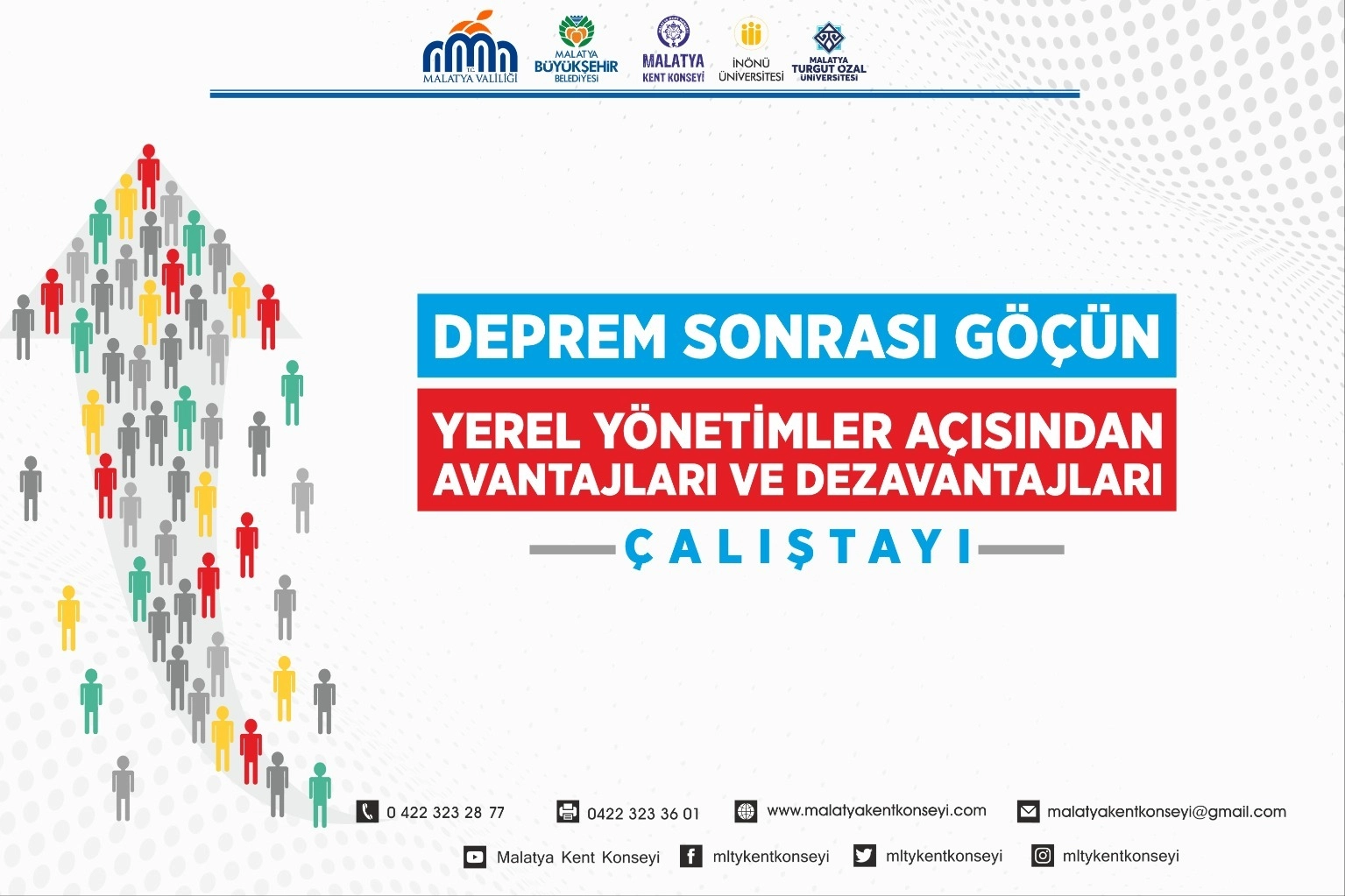 Malatya Kent Konseyi’nin koordinasyonunda Malatya Valiliği, Malatya Büyükşehir Belediyesi, İnönü Üniversitesi ve Malatya Turgut Özal Üniversitesi işbirliğinde “Deprem Nedenli Göçün Malatya İline Etkileri” çalıştaylar dizisinin üçüncü çalıştayında ele alınan “Deprem Sonrası Göçün Yerel Yönetimler Açısından Avantajları ve Dezavantajları” konusunun sonuç raporu yayımlandı. Söz konusu çalıştaya Malatya Büyükşehir Belediye Başkanı Sami Er, Malatya Kent Konseyi Genel Sekreteri Dr. Hasan Batar, Malatya Kent Konseyi Genel Kurul ve Yürütme Kurulu üyeleri, Sivil Toplum Kuruluş Temsilcileri, Muhtarlar, Kamu Kurum ve Kuruluş Temsilcileri, akademisyenler katılım göstermişlerdi.