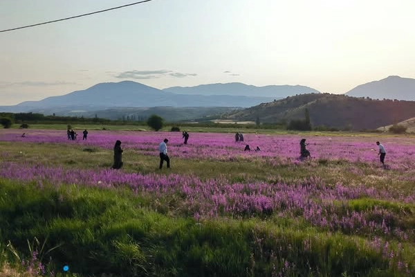 Malatya'nın Doğanşehir ilçesine bağlı Çığlık Mahallesi'nde Malatya Adıyaman karayolu üzerinde vatandaşa ait olan boş tarlayı mor renge boyayan lavanta görünümlü yabani otlar göz alıcı rengiyle doğaya ayrı bir güzellik katıyor.