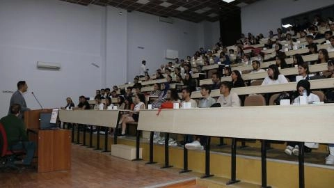 Erasmus+’ın sunduğu fırsatlar, başvuru süreçleri ve programın başarıyla yürütülmüş örnek projelerinin ele alındığı oturumda konuşan Erasmus Koordinatörü Öğr. Gör. Hasan Toman, Erasmus+ programına başvuru adımları ve başvuru sırasında dikkat edilmesi gereken hususlar hakkında açıklamalarda bulundu. Ülkeler bazında verilen hibe miktarlarına da değinen Toman, yurt dışı öğrenim ve staj hareketliliği konularında detaylı bilgi verdi.
