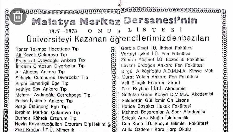 Malatya'da 1977-78 Eğitim döneminde Üniversiteyi kazananların listesinde dikkat çeken isimler var.