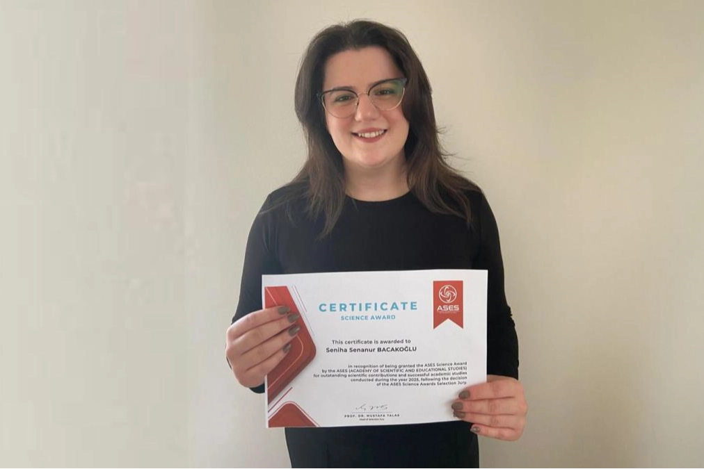 Seniha Senanur Bacakoğlu, Risk Analizi dersi kapsamında edindiği teorik bilgileri uygulamaya dönüştürerek iş sağlığı ve güvenliği alanında hazırladığı "Şeker Fabrikalarında Tehlike Önceliklendirmesi: L Matrisi Yöntemi ile Bir Risk Değerlendirmesi", "İnşaat Sahalarında Tehlike Kaynaklarının Nicel Analizi ve Risk Önceliklendirme Yaklaşımı", "Tekstil İşletmelerinde İş Sağlığı ve Güvenliği Risklerinin FMEA Yöntemi ile Değerlendirilmesi" adlı tam metin bildirilerini uluslararası düzeyde sundu. Bacakoğlu bu bildirilerle ASES Bilim Ödülleri Seçici Kurulu tarafından 2025 yılı içerisinde gerçekleştirilen başarılı akademik çalışmaları ve bilimsel katkıları dolayısıyla "ASES Bilim Ödülü"ne (ASES Science Award) layık görüldü. Bacakoğlu'nun ödülü ise Bilimsel ve Eğitimsel Çalışmalar Akademisi (ASES) tarafından tescillendi.