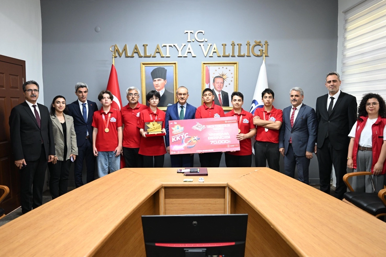 Yarışmada geliştirdikleri yenilikçi teknoloji projeleriyle hem jüriyi hem de izleyicileri etkileyen başarılı gençler, kazandıkları ödülün ardından Malatya ‘yı gururlandırdı. Vali Yavuz, gençleri ve onları yetiştiren öğretmenleri tebrik ederek başarılarının devamını diledi. Ziyaret sırasında öğrenciler projelerini Vali Yavuz’a tanıtarak süreç hakkında bilgi verdi. Gençlerin vizyonu ve üretkenliği karşısında duyduğu memnuniyeti dile getiren Vali Yavuz, “Sizler ülkemizin yarınlarısınız. Böyle azimli ve başarılı gençleri görmek bizleri umutlandırıyor. Her zaman yanınızdayız,” dedi. Ziyaret, hatıra fotoğrafı çekimi ve hediye takdimi ile sona erdi.