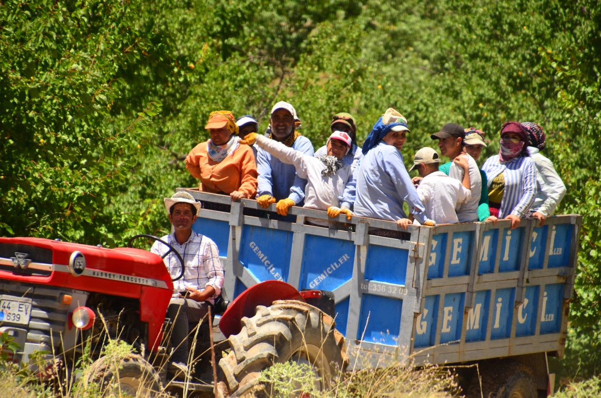 Elazığ'ın Baskil ilçesinde Diyarbakır Ergani'den gelen aileler kayısı hasadında çalışıyor. İşçilerin sıcak hava ve zor şartlarda günlük 670 lira karşılığında kayısıları silkeleyerek toplayıp islime veriyor. Bu arada hasad sırasındaki maliyetleri gözönüne alan üreticiler ise kayısılarını ya dalından satıyor ya da yarı yarıya ortağa veriyor. Kayısı bahçelerinde hummalı bir çalışma göze çarpıyor.