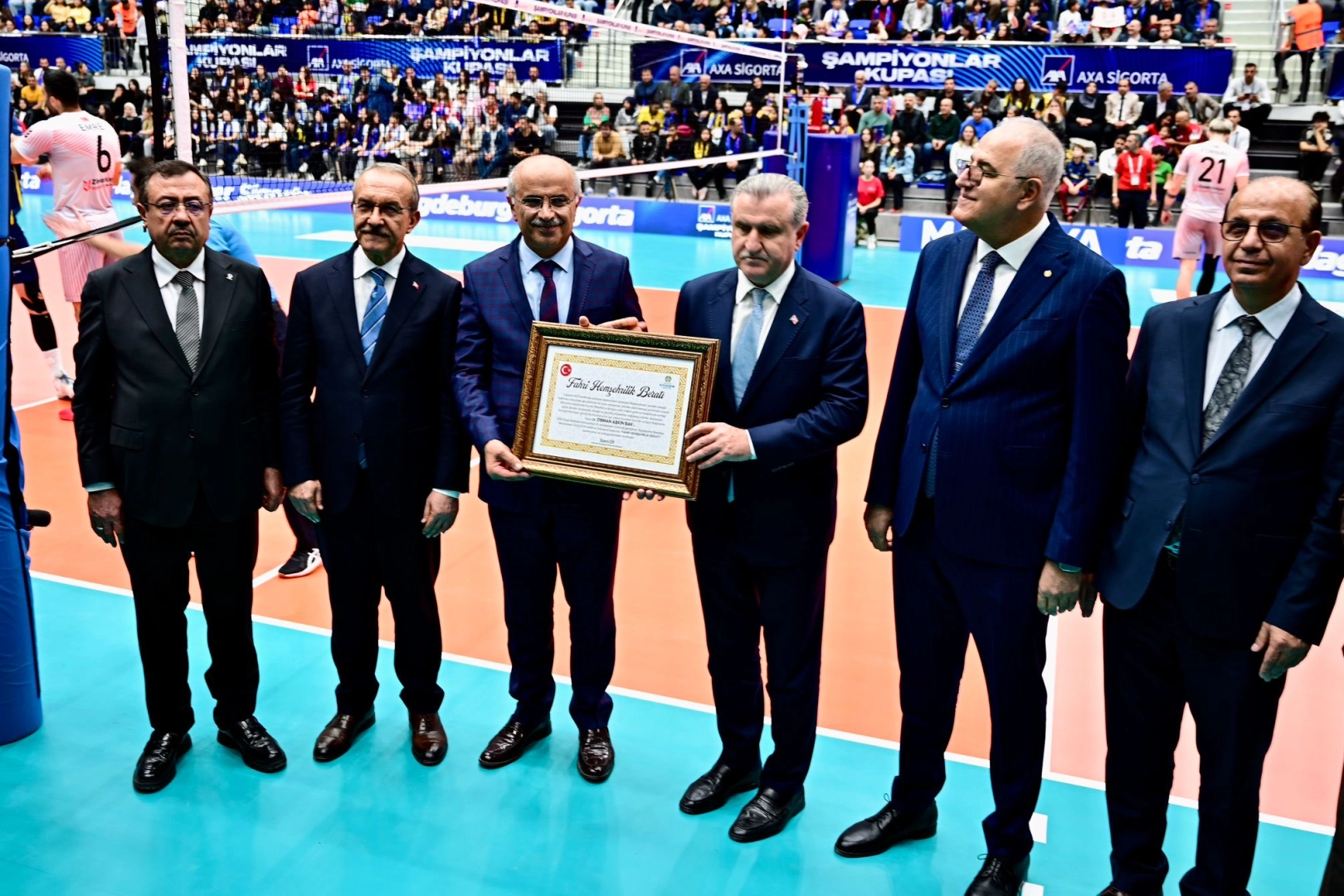 Malatya Büyükşehir Belediye Meclis Toplantısı’nda alınan kararla, deprem sürecinde Malatya’ya verdiği katkı ve kentin yeniden imarı sürecinde sağladığı destek dolayısıyla ‘Fahri Hemşehrilik Beratı’ verilmesi kararlaştırılan Gençlik ve Spor Bakanı Dr. Osman Aşkın Bak’a 'Fahri Hemşehrilik Beratı takdim edildi. Bakan Bak’a Başkan Sami Er tarafından takdim edilen Hemşerilik Beratı, Malatya'nın ev sahipliğinde gerçekleşen ve Orduzu Spor Salonu'nda oynanan Ziraat Bankkart ile Fenerbahçe Medicana voleybol takımları arasındaki 2025 Erkekler AXA Sigorta Şampiyonlar Kupası final maçı öncesinde verildi. “BAKANLARIMIZ MALATYA'MIZA BÜYÜK DESTEK VERİYOR” Önemli bir günü yaşadıklarını dile getiren Malatya Büyükşehir Belediye Başkanı Sami Er, "Seçim döneminde 'Malatya'mızı spor şehri yapacağız' dedik. Sayın Cumhurbaşkanımız, bakanlarımız, Gençlik ve Spor Bakanımız Malatya'mıza büyük destek veriyor. Malatya'mızda büyük bir seferberlik var. Konutlarımız yükseliyor, sene sonunda teslim edeceğiz. Bir taraftan da gençlik, spor ve eğitime büyük önem veriyoruz. Bakanımıza ne zaman gitsek Malatya'mıza her zaman destek verdiler; 2,5 milyarlık yatırım yapıldı. Takdire şayan bir yatırım. Birçok noktaya spor kompleksi ve spor salonları yapılıyor. 2026 yılında da yeni yerleşim yerlerine spor kompleksleri yapacağız. İnönü Üniversitesi karşısında ‘Spor Köyü’ projemiz olacak. Projelerimizi yapıp, bakanımıza göndereceğiz. Bakanımız, 'Ne projeniz varsa yapmaya hazırız' dedi. Malatya halkı adına Sayın Cumhurbaşkanımıza, bakanlarımıza, Gençlik ve Spor Bakanımıza Malatya'ya katkılarından dolayı teşekkür ediyorum" diye konuştu. Gençlik ve Spor Bakanı Dr. Osman Aşkın Bak ise "Malatya Malatya bulunmaz eşin. Sizleri seviyoruz" diyerek, maç öncesinde iki takıma da başarılar diledi. Konuşmaların ardından Gençlik ve Spor Bakanı Dr. Osman Aşkın Bak’a Malatya Büyükşehir Belediye Başkanı Sami Er tarafından 'Fahri Hemşehrilik Beratı’ takdim edildi.