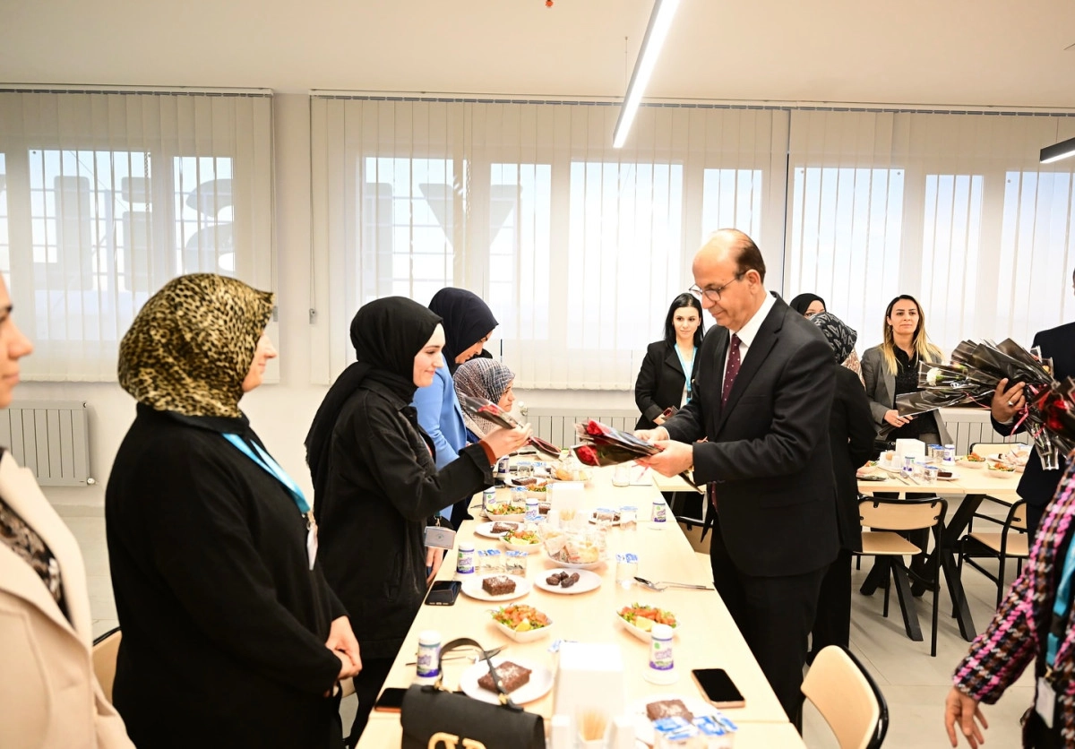 Yeşilyurt Belediyesi Hizmet Binası yemekhanesinde kadın personelleri ağırlayan Yeşilyurt Belediye Başkanı Prof. Dr. İlhan Geçit, kadınların büyük bir titizlikle işlerini yerine getirdiğini ifade ederken, kadınların iş dünyasındaki başarılarına, titizliğine ve özverisine dikkat çekti. Başkan Geçit, Yeşilyurt Belediyesinde görev yapan kadınların verilen görevleri titizlikle ve başarıyla yerine getirdiğini ifade ederken, “Ailenin ve toplumun temel taşı olan, hayatın her anını varlıklarıyla onurlandıran, desteklerini esirgemeyen, eğiten, yetiştiren, yüreklerindeki sevgi ve şefkati karşılıksız veren kadınlarımızın varlığı bizlere ayrı bir güç katmaktadır. Kültürümüzde ve toplumsal hayatımızda bir gün değil her gün kadının değeri vardır. Hayalleriyle, çalışkanlıklarıyla, gayretleriyle bu topluma hayat veren kadınlarımızla gurur duyuyoruz. Kadın, sevginin, gücün ve umudun kaynağıdır. Belediyemizde birlikte mesai yaptığımız kadın personellerimizin tecrübeleri, bilgi ve birikimlerinden üst seviyede yararlanıyoruz. Verilen görevleri eksiksiz bir şekilde yerine getiren tüm personellerimize teşekkür ediyorum. Kadınlarımızın güçlü ve kararlı duruşlarıyla geleceğimizi inşa ediyoruz. Kadınlarımızın güçlü iradesi, hayalleri ve geleceğe dair umutlarıyla bugünden geleceğe daha güvenle bakıyoruz. İnsan hayatının her safhasında varlığı ile bizlere güç katan tüm kadınlarımızın 8 Mart Dünya Kadınlar Gününü en içten dileklerimle kutluyorum.” dedi.