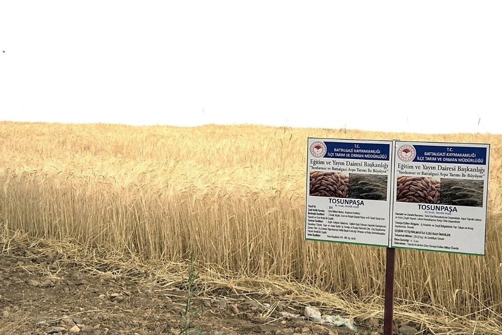 Tarım ve Orman Bakanlığı Eğitim ve Yayım Dairesi Başkanlığının ‘Tarımsal Yeniliklerin Yaygınlaştırılması’ Projesi kapsamında Battalgazi ilçesine bağlı Beydağı Mahallesinde yeni arpa çeşitlerinin ekimi yapıldı.Battalgazi Tarım ve Orman İlçe Müdürlüğü tarafından hazırlanan ‘Yurdumuz ve Battalgazi Arpa Tarımı İle Büyüyor’ projesi ile Battalgazi ilçesine bağlı Beydağı Mahallesinde tarla günü etkinliği düzenlendi. Düzenlenen etkinliğe Tarım ve Orman İl Müdür Yardımcısı Ahmet Turan Karaca, Bitkisel Üretim ve Bitki Sağlığı Şube Müdürü Demet Köksal, İlçe Müdürü Hasan Basri Hacıoğlu, Tarla Bitkileri Merkez Araştırma Enstitüsü konu uzmanları, teknik personeller ve çiftçiler katıldılar.Etkinlikte bir konuşma yapan Tarım ve Orman İl Müdür Yardımcısı Ahmet Turan Karaca, yürütülen bu projeyle birlikte toprak ve iklim yapısına uygun çeşitlerin belirlenmesinin amaçlandığını belirterek, “5 yeni arpa çeşidinin ve yöremizde ekimi yapılan, yerli arpa çeşidinin kuraklığa dayanıklılığı ve verim yönünden karşılaştırılması yapılmıştır” dedi.Her bir arpa çeşidinin 3’er dekar alanda ekiminin gerçekleştirildiğini belirten Karaca, “Yapılan hesaplamaya göre en iyi verim aldığımız arpa çeşitlerimiz Burakbey, Bozlak ve Tosunpaşa’dır. 1 dekar alandan, Burakbey çeşidinden 320 kg, Tosunpaşa çeşidinden 300 kg, Bozlak çeşidinden 300 kg, Akar çeşidinden 280 kg ve Yalın çeşidinden 270 kg verim elde edilmiştir. Yerli arpa çeşitlerinden ise 1 dekar alandan 120 kg verim alınmıştır. Sonuç olarak iklim ve toprak yapımıza en uygun ve en çok verim alınan çeşitlerin ‘Burakbey, Bozlak ve Tosunpaşa’ olduğu tespit edilmiştir” ifadelerine yer verdi.Bu tür projelerle Malatya’da tarım ve hayvancılığının geliştirilmesi için yöreye en uygun çeşitlerle en verimli üretimlerin yapılmasını amaçlandığını belirten Karaca, “Üreticilerimiz çeşitler arasındaki farkları bizzat gözleriyle görüyorlar. Projemizin 2. yılında ise en çok verim elde ettiğimiz çeşitlerin en az 150 dekar alanda ekimini sağlayacağız. Projenin ilimize ve üreticilerimize hayırlı olmasını diliyorum" diye konuştu.Katılımcılara konu uzmanları tarafından ekili alanlar ile ilgili bilgilendirmeler yapılırken üreticilerin soruları da uzmanlar tarafından cevaplandırıldı.