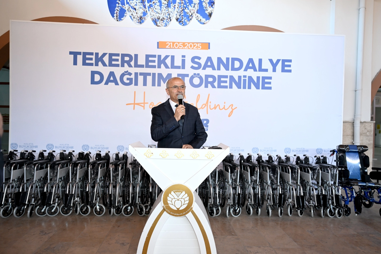 Tekerlekli Sandalye Dağıtım Töreni’nde bir konuşma gerçekleştiren Malatya Büyükşehir Belediye Başkanı Sami Er, Büyükşehir Belediyesi olarak engelli vatandaşların hayatını kolaylaştırmak ve erişilebilirliklerini artırmak adına gerekli çalışmaların yapıldığını belirtti.