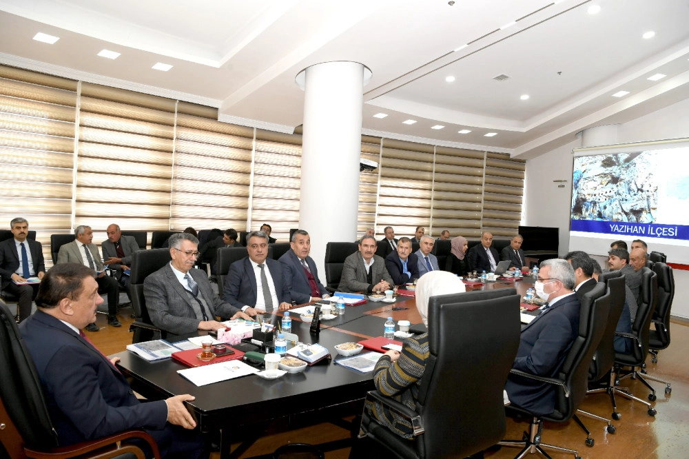 Yapılan çalışmaların değerlendirilmesi ve 2023 yılı içerisinde yapılacak olan çalışmaların programlanması amacıyla toplantılar gerçekleştirdiklerini belirten Başkan Gürkan ise konuşmasında, “Yılsonlarında ve yılbaşlarında ilimizde yapılan yatırımların genel değerlendirilmesi, yapılan hizmetlerde tespit edilen eksikliklerin giderilmesi, yapılacak olan çalışmaların programlanması maksadıyla değerlendirme toplantılarımızı periyodik aralıklarla düzenlemekteyiz. İlçemizin kaymakamı, belediye başkanı, meclis üyeleri, ilçe başkanlarıyla beraber ilçenin eksikliklerini masaya yatırarak yol haritamızı belirliyoruz. 13 ilçemizde de altyapı, üstyapı, çevre düzenlemesi, spor alanları ile sosyal ve kültürel alanlardaki çalışmalarımız hızla devam ediyor. Bütün ilçelerimizde de ilçe belediyelerimizin uhdesinde olan yollarda dâhil olmak üzere şu anda yüzde 80’in üzerinde bir yol çalışması gerçekleştirildi. Bazı ilçelerimizde bu oran yüzde 90’ı da buluyor. 2023 yılı yatırım programında da bize ait olan yolların yenilenmesi, iyileştirilmesi, trafikte güvenli hale getirilmesi, varsa 2. kat asfaltların yapılması, ilçe belediyelerine ait yolların da bakım, onarım, tadilat, yama işlerinin yanında varsa yoğun çalışmalarda ilçe belediyelerine destek olma noktasında yardımlarımıza devam ediyoruz” şeklinde konuştu.