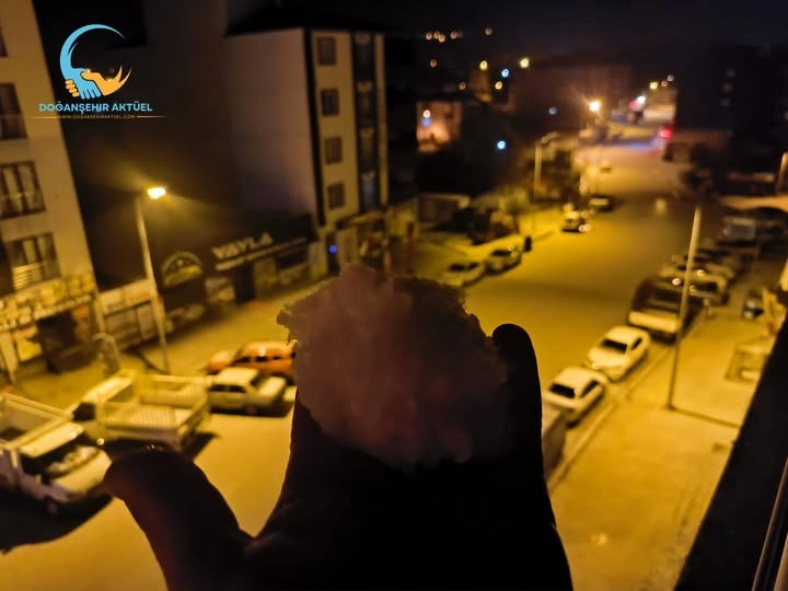 Doğanşehir ilçesinde etkili olan dolu yağışı nedeniyle cadde ve sokaklar beyaza büründü.