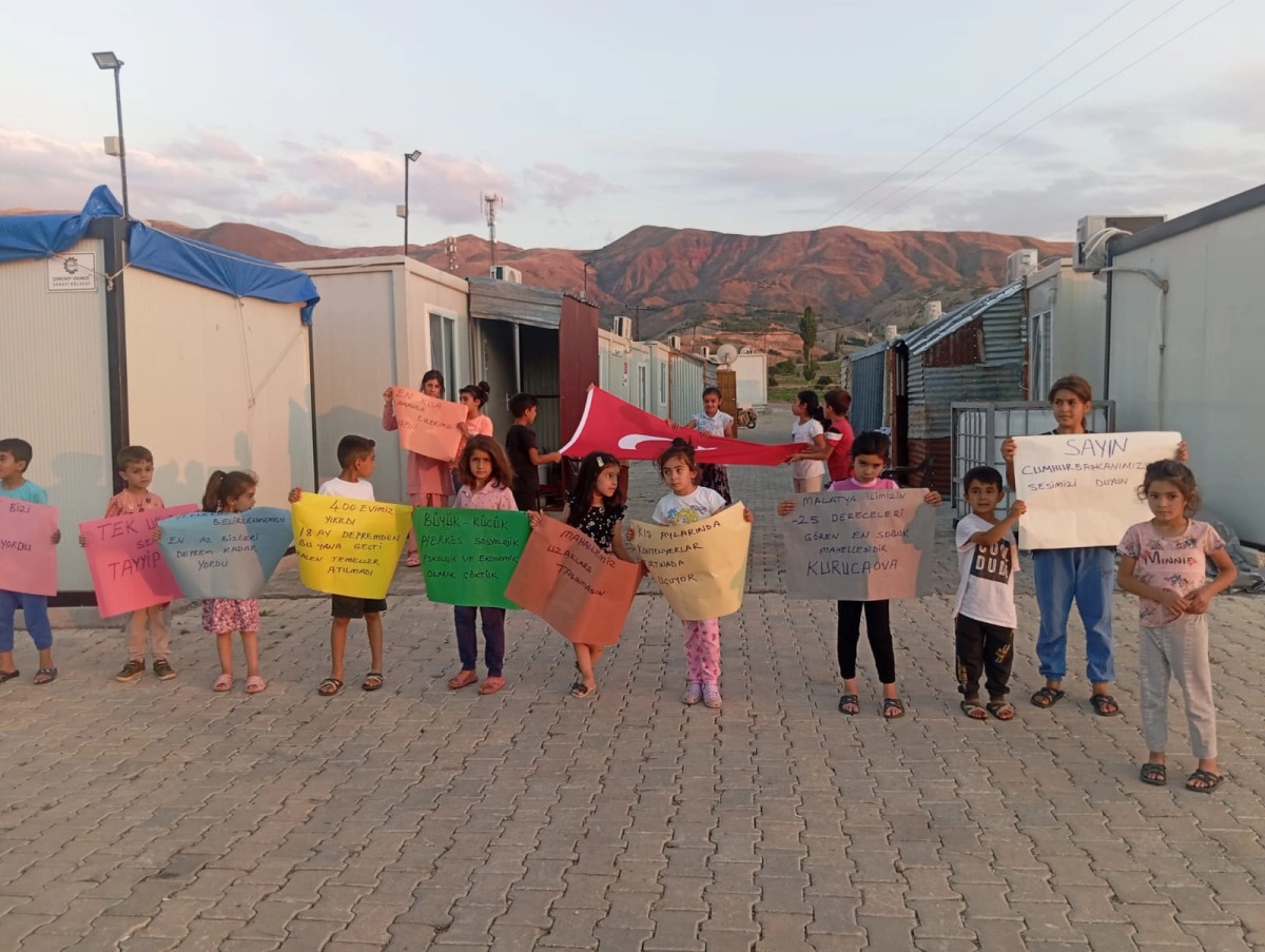 Malatya Olay'ın haberine göre Malatya Doğanşehir ilçesinin Kurucaova Mahallesinde yaşayanlar dert küpü. 1,5 yıl geçmesine rağmen Kurucaova Mahallesin de halk evlerinin yapılmamasından şikayet ediyor. Büyüklerin organize ettiği Konteynerlerde kalan çocuklar seslerini duyurmak için bugün yürüyerek eylem yaptılar.