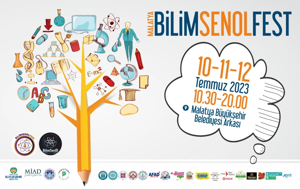 Malatya Büyükşehir Belediyesi, Malatya İş Adamları Derneği (MİAD), Bilimsenol Platformu iş birliğinde düzenlenen Bilimsenol Festivali 3 gün boyunca devam edecek. 10-11-12 Temmuz tarihleri arasında Malatya Büyükşehir Belediyesinin arka tarafında bulunan alanda düzenlenen bilim, teknoloji, savunma sanayi, sıfır atık, uygulamalı bilimsel etkinliklere, birbirinden önemli konuşmacılar katılım sağlayacak.