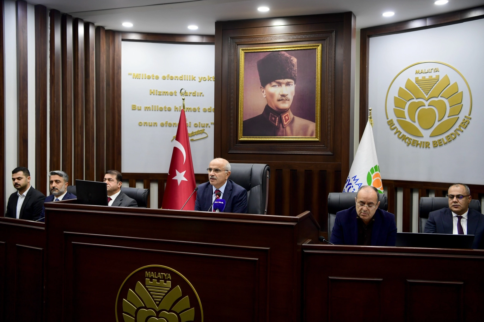 Malatya Büyükşehir Belediye Başkanı Sami Er başkanlığında Büyükşehir Belediyesi Meclis Salonu'nda sunum eşliğinde gerçekleştirilen bilgilendirme toplantısına Yeşilyurt Belediye Başkanı Prof. Dr. İlhan Geçit, Battalgazi Belediye Başkanı Bayram Taşkın, Kale Belediye Başkanı İhsan Özbay, Darende Belediye Başkanı Alican Bozkurt, Malatya Büyükşehir Belediyesi Genel Sekreteri Dr. Mehmet Beytur, MASKİ Genel Müdürü Sinan Çeçen, Genel Sekreter Yardımcıları, Daire Başkanları ile kurum ve kuruluşların temsilcileri katıldı.