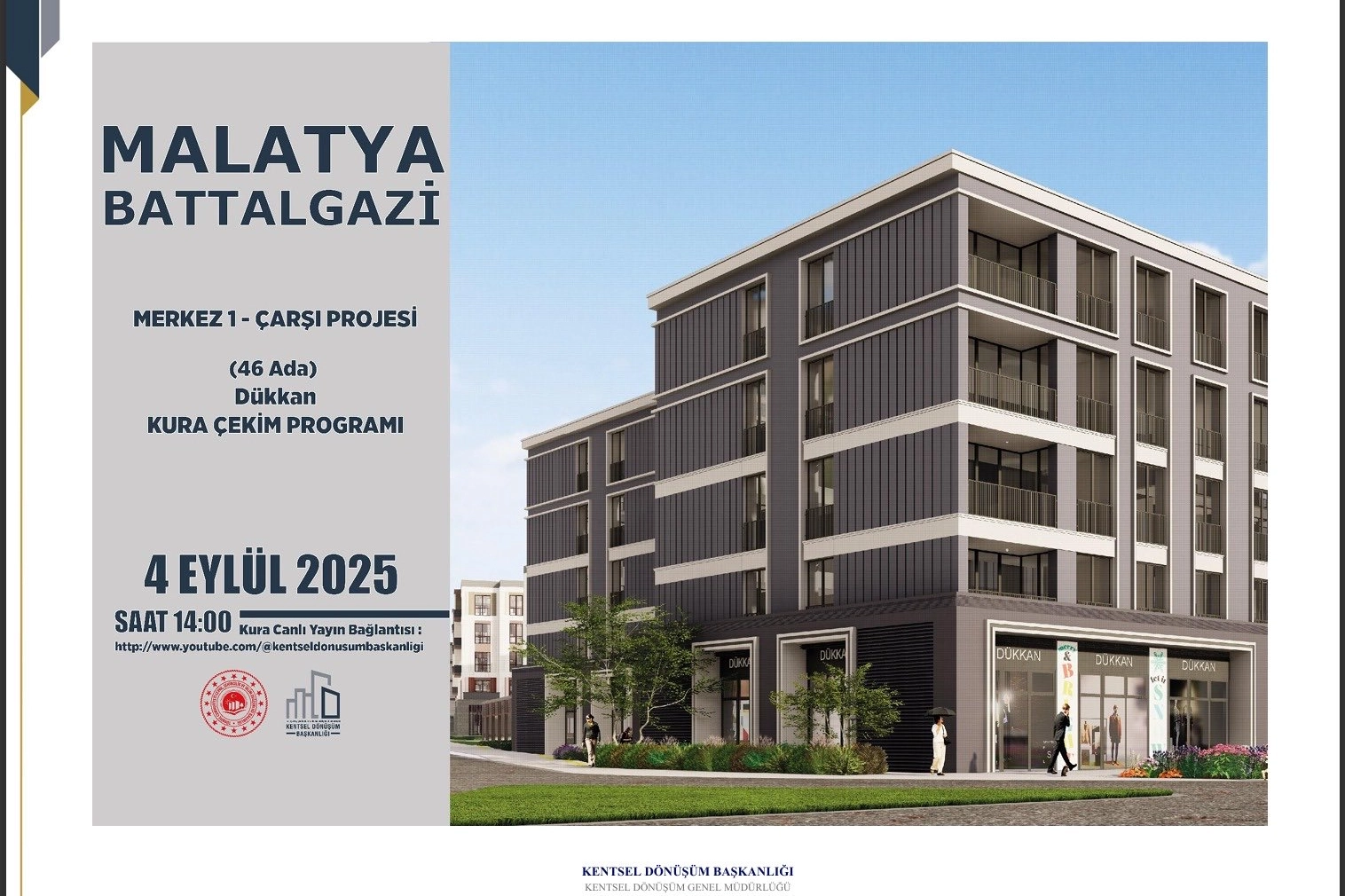 Malatya Valisi Seddar Yavuz, Malatya #Çarşı Projesinde bulunan dükkanların kurasının 4 Eylül 2025 Perşembe günü saat 14.00'de çekileceğini bildirmesinin ardından yaptığı açıklamada "Kıymetli Hemşehrilerim , Daha önce bugün kuraları çekilecek diye duyurduğumuz 2 bölümde, Google ve YouTube’da global ölçekte meydana gelen erişim sorunu nedeniyle kuralar 11 Eylül tarihine ertelenmiştir" dedi. Malatya'da Merkez 1 Çarşı Projesinde yer alan 46 ve 53 Ada dükkan işyeri kurası 11 Eylül'de canlı yayında çekilecek.