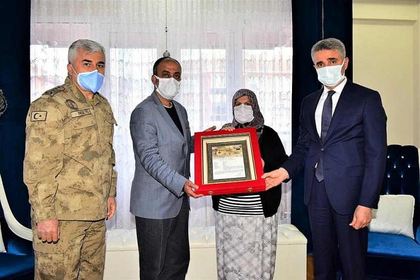 “Vali Aydın Baruş, Pençe Kartal-2 Harekât bölgesinde yer alan Gara'da, bölücü terör örgütü PKK tarafından alıkonularak, şehit edilen Jandarma Personel Astsubay Çavuş Semih Özbey’in ailesine Jandarma Genel Komutanlığınca düzenlenen şehadet belgesini takdim etti.
