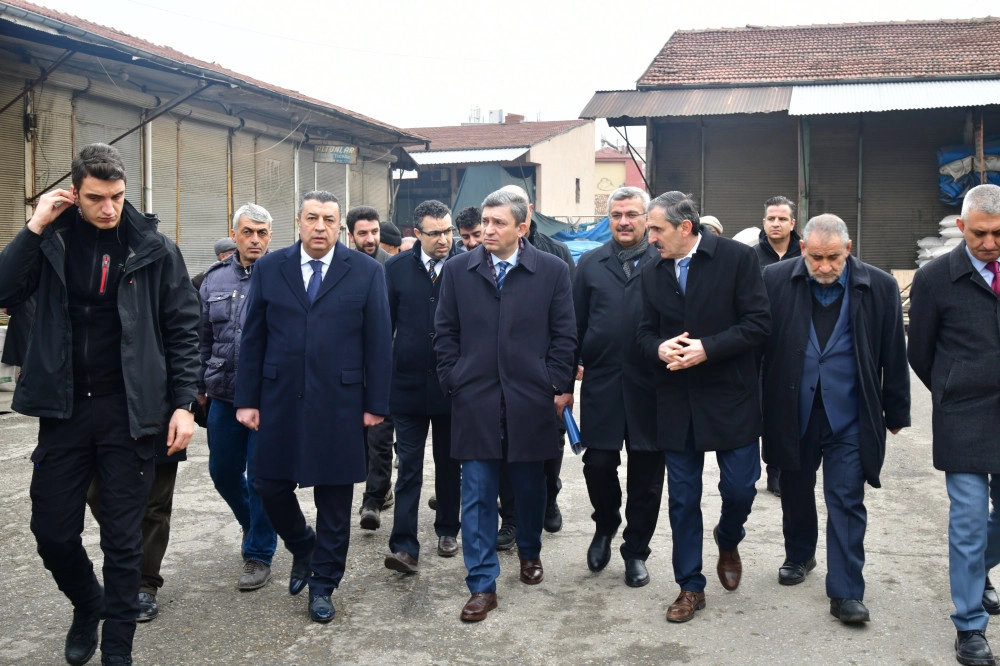 Vali Şahin ve beraberindeki heyet, daha sonra Buğday Pazarında incelemelerde bulundu.