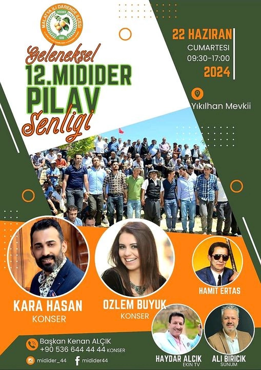 Darende ilçesinde yaşayan Atmalılar geleneksel olarak her yıl yaptıkları Pilav Şenliğini 22 Haziran Cumartesi saat 09.30 ile 17.00 Darende'nin Yıkılhan mevkinde yapacak. Kısa adı MİDİDER olan Malatya İli Darende İlçesi Çevre Köyleri Derneği Başkanı Kenan Alçık, "şenliğimize Türkiye'deki tüm Atmalı,Atmi, Atmenki ve Atmaneki akrabalar davetlidir. Şenliğe katılarak bizleri onure etmenizi bekliyoruz" dedi.