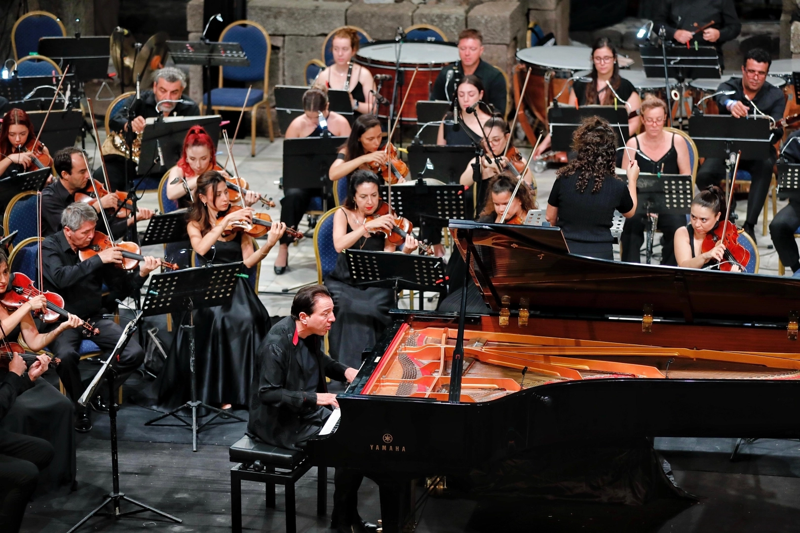 İZMİR (İGFA) - İzmir Kültür, Sanat ve Eğitim Vakfı (İKSEV) tarafından düzenlenen 37. Uluslararası İzmir Festivali’nin son etkinliği, dünyaca ünlü piyanist Fazıl Say ve İzmir Büyükşehir Belediyesi Ahmed Adnan Saygun Senfoni Orkestrası’nın konseri oldu. Bergama Asklepion Antik Tiyatrosu’nda yapılan konserde, Fazıl Say, Beethoven'in Do minör 3 numaralı piyano konçertosunu seslendirdi. Şef Nil Venditti yönetimindeki Ahmed Adnan Saygun Senfoni Orkestrası da Edward Elgar'ın Enigma Varyasyonları’nı icra etti. Tarihi alanda yapılan konser, İzmirlilere unutulmaz anlar yaşattı.