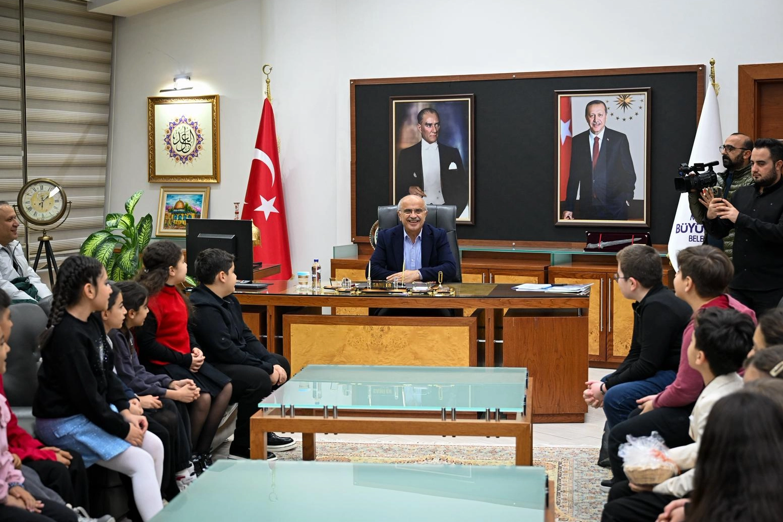 Malatya Büyükşehir Belediye Başkanı Sami Er, Malatya Büyükşehir Belediyesi Sanat Merkezi tarafından düzenlenen 'Küçük Kalplerden Büyük Ezgiler' konserinde sahne alan çocuk korosu sanatçılarını ve ailelerini kabul etti.
