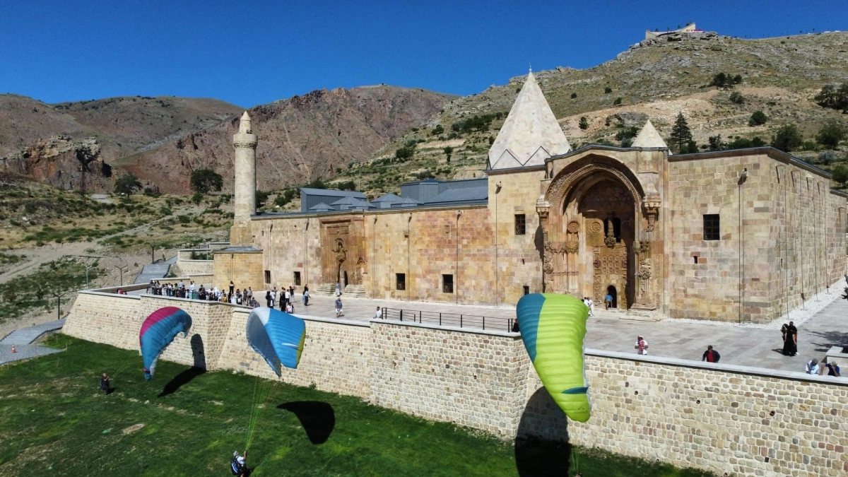 Tarihi Ulu Caminin bulunduğu Sivas'ın Divriği İlçesinde Yamaç Paraşüt uçusu yapıldı.