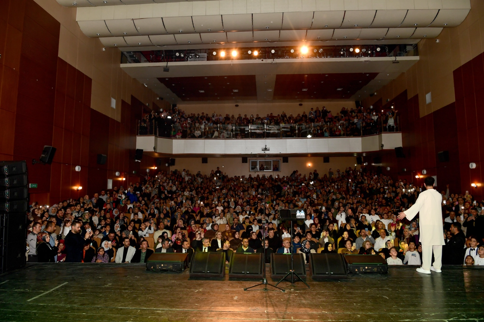 İlahi dinletisiyle kendisini izlemeye gelenlerin gönüllerine dokunan Aydın, sahnede Malatya Büyükşehir Belediyesi Sanat Merkezi Çocuk Korusuyla birlikte de ilahi seslendirdi.