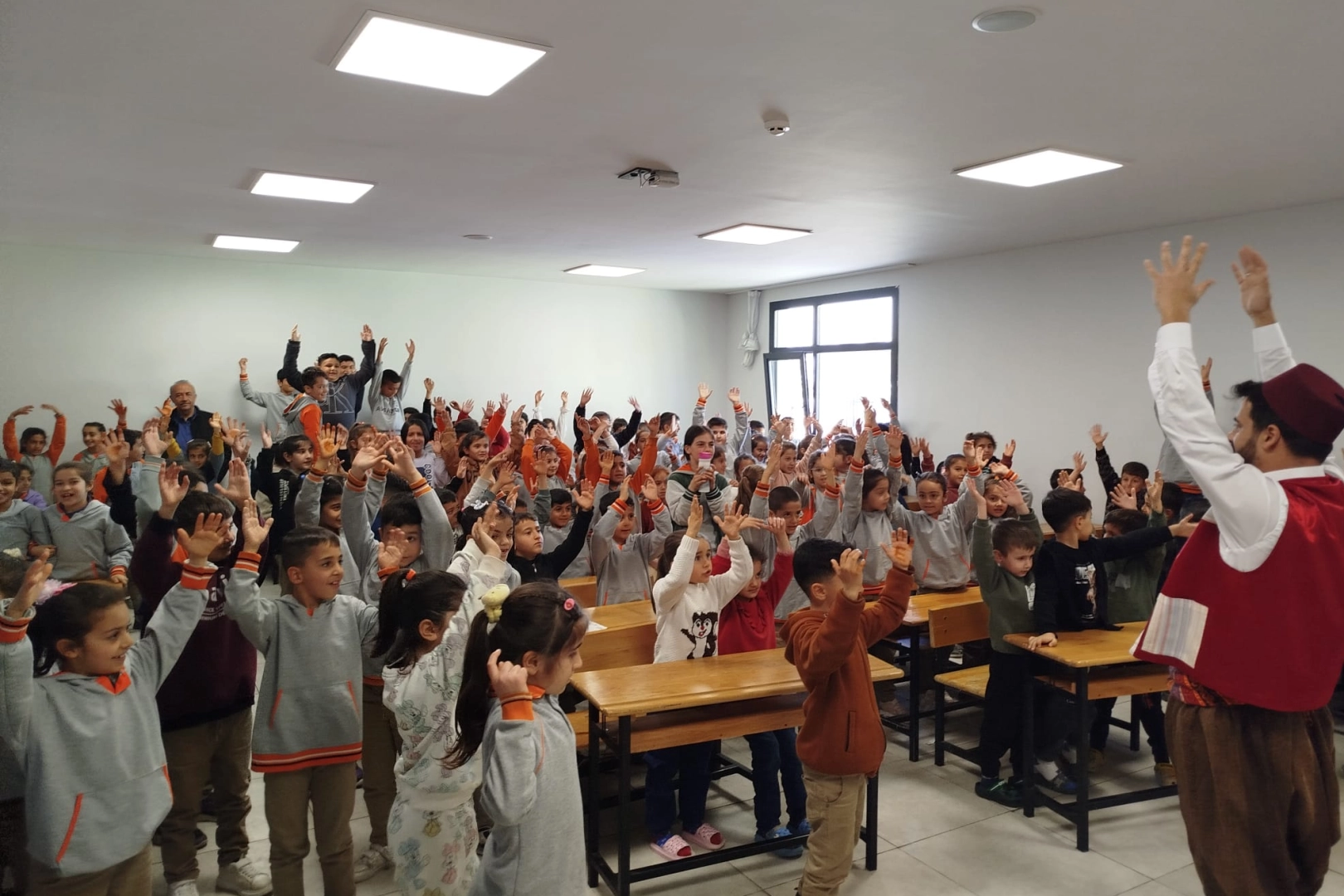 Dünya Tiyatro Günü’nün anlam ve önemine uygun olarak düzenlenen etkinlikte, çocukların tiyatro sanatına olan ilgisini artırmak ve kültürel farkındalıklarını desteklemek amaçlandı. Program sonunda öğrencilere hikâye kitapları, boyama kitapları ve çeşitli hediyeler takdim edildi.