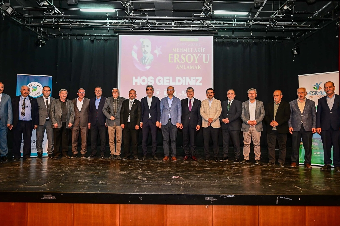 Programın açılış konuşmasını yapan Yeşilyurt Belediye Başkanı Prof. Dr.İlhan Geçit, Mehmet Akif Ersoy’un Türk milletinin hafızasında derin izler bıraktığını belirterek, “Böylesine önemli bir değeri anmak ve anlamak, genç kuşaklara doğru bir miras bırakmak adına büyük bir sorumluluk taşıyoruz. Milli ve manevi değerlerimizi yaşatmak adına bu tür etkinlikleri önemsiyoruz. Ersoy’u sadece bir şair olarak değil; bir fikir adamı, bir mücadele insanı olarak da anlamalıyız. Mehmet Akif, sadece bir şair değil, aynı zamanda bir fikir adamı, bir vatansever, bir milli mücadelenin öncüsüydü. O, her dizesiyle milletine güç vermiş, halkına umut olmuş, tarihimizde derin izler bırakmıştır. Onun yazdığı İstiklal Marşı, sadece bir milli marş değil, aynı zamanda bağımsızlık, özgürlük ve milletin gücünün simgesidir. Mehmet Akif Ersoy’un aziz hatırasını yaşatmak, bizlere sadece geçmişe saygı duymak değil, aynı zamanda bugün ve yarın için sorumluluklarımızı hatırlatmaktadır. Vatan, millet ve mukaddesat uğruna kalemiyle mücadele veren Mehmet Akif Ersoy’u anlamak; değerlerimize, tarihimize ve medeniyet birikimimize sahip çıkmaktır.” diye konuştu.