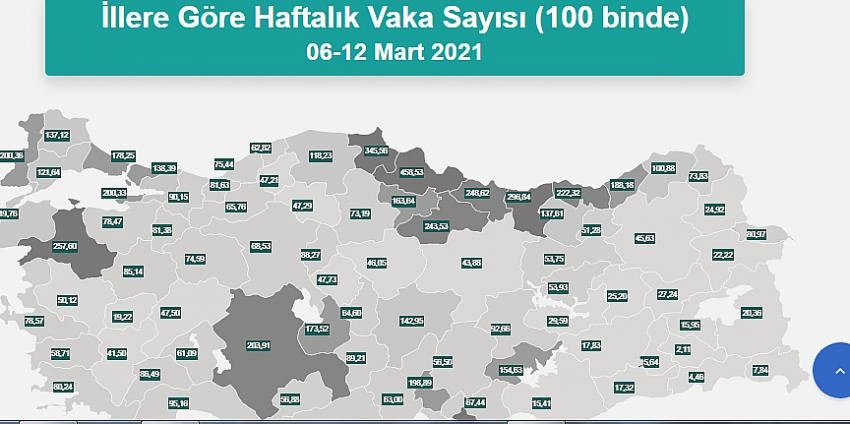 Korona virüs vaka haritasının ilk haritasında 41 vaka, ikinci haritasında (20 Şubat-27 Şubat) günlük 100 binde 46 vakayla orta grupta (sarı renkte) yer alan Malatya, Şubat’ın son günlerinde başlayan yükselişini mart ayının ortalarına kadar sürdürdü. Risk haritasında orta riskli (Sarı) iller arasında yer alan Malatya 100 bin kişide 92 vaka ile yüksek riskli (Turuncu) illeri de geçerek çok yüksek riskli (kırmızı) iller arasında yer almaya hazırlanıyor.