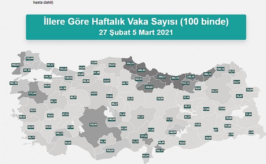 100 ve yukarı vaka sayısı ise çok yüksek riskli iller olarak tanımlandı