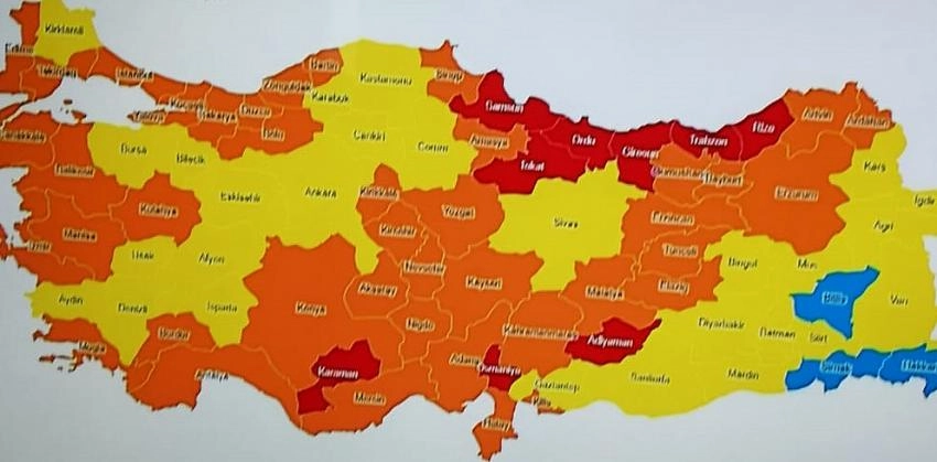 39 İlin bulunduğu turuncu grupta Malatya’nın yanı sıra İstanbul, İzmir ve Adana'nın da yer aldığı bu liste şöyle: Burdur, Kocaeli, Balıkesir, Amasya, Ardahan, Gümüşhane, Mersin, Sinop, Antalya, Bolu, Artvin, Edirne, Tekirdağ, Yalova, Kayseri, Kırklareli, Kütahya, Niğde, Zonguldak, Erzurum, Nevşehir, Muğla, Düzce, Kilis, Kırıkkale, Bilecik, Hatay, Malatya, Elazığ, Çanakkale, Çorum, Bursa, Sivas, Aydın, Yozgat ve Manisa illeri yer alıyor. Turuncu gruptaki illerin normalleşme süreci için bir süre daha beklemeleri gerekiyor. Bu illerle ilgili nihai kararı 1 Mart Pazartesi günü toplanacak olan Kabine toplantısı sonrası normalleşme sürecinde izlenecek yollar doğrultusunda İl Hıfzıssıhha Kurulları verecek.