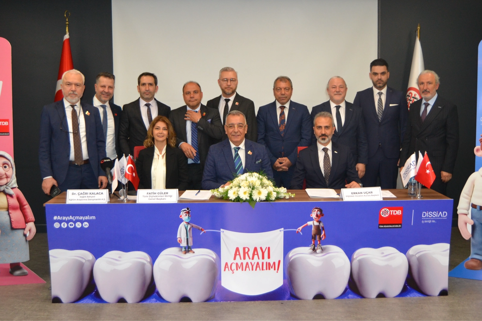 TDB Genel Başkanı Fatih Güler, imza töreninde yaptığı konuşmada şu ifadeleri kullandı: “Bu anlamlı projenin ana hedefi yaşam boyunca yani gencinden, artan yaşlı nüfusa kadar ağız ve dişleri korumaya odaklanmaktır. Toplumun ağız diş sağlığı eğitimi ve ağız hastalıkları ve ağızdaki durumlara ilişkin bilgilendirilmesi, temel ağız diş sağlığı hizmetleri, koruyucu önlemler ve programlar hakkında bilinçlendirilmesi amaçlanmaktadır. Küresel boyutta dünya nüfusunun yüzde 90’ı çürük, dişeti hastalıkları ve ağız kanserine kadar uzanan ağız hastalıkları yönünden, ciddi bir risk altındadır. 19. ve 20. yüzyıllarda diş çürüğü dünya genelinde bir epidemik salgın olarak tanımlanmış ve halen günümüzde de nezleden sonra dünyada en yaygın olarak görülen ikinci hastalık olarak kabul edilmektedir. Bu bağlamda bireyler sadece düzgün fırçalama ve diş ipi kullanma, şekerli yiyecekleri kesme, sağlıklı yemek yeme ve kontrol için 6 ayda bir için DİŞHEKİMİNİ ziyaret ederek, iyi bir ağız sağlığına sahip olabilirler. Bu noktada diş ve dişeti hastalıklarının önlenebilir hastalıklardan olduğu gerçeğinden hareket ederek; toplumun bilgilendirilmesi ve ağız-diş bakımı konusunda alışkanlık oluşturulması konusunda hükümetlere, sağlık alanındaki meslek kuruluşlarına, eğitim kurumlarına, gönüllü sağlık kuruluşlarına ve sağlık endüstrisine sorumluluklar düşmektedir. Başta merkezi yönetim olmak üzere; yerel yönetimler, Dişhekimliği Fakülteleri, sağlık meslek birlikleri, sivil toplum kuruluşları ve sağlık endüstrisi vb yapılar ağız ve diş sağlığının iyileştirilmesi konusunda mevcut ürün ve süreçlerde önemli teknolojik yeniliklerin ağız sağlığının geleceğini şekillendirmedeki rolünü tartışarak gerçekçi ve sürdürülebilir projeler üzerinde çalışmalıdırlar. Türk Dişhekimleri Birliği ve Dişhekimleri Odaları olarak ağız diş sağlığı politikaları üretme ve hayata geçirmede tüm bileşenlerle ortak çalışmaya, üzerimize düşeni yapmayı dün olduğu gibi bugün de hazır olduğumuzu kamuoyunun bilgisine sunarız. DİŞSİAD’ın destekleri ile hayata geçireceğimiz ‘Arayı Açmayalım’ projemizle ülkemizde diş ve dişeti rahatsızlıklarının önlenebilir olduğunu halkımıza en etkin medya araçları vasıtası ile aktarmaya ve bir bilinç oluşturmaya gayret edeceğiz.”