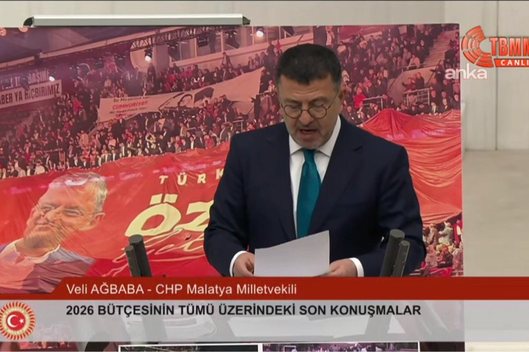 Genel Kurula hitap eden CHP Malatya Milletvekili Veli Ağbaba, İstanbul Büyükşehir Belediyesi’ne yönelik iddianamede yer alan “Özgür gelecek” pankartını kürsü arkasına koyarak iktidara sert eleştiriler yöneltti. Ağbaba, iddianameyi “hukuk, vicdan ve ahlaktan yoksun” sözleriyle eleştirirken Meclis’te tartışma yaşandı.