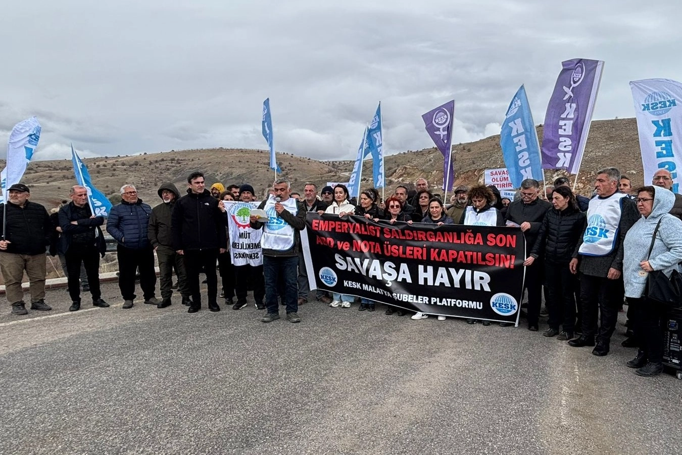 Barikatların önünde düzenlenen basın açıklamasını okuyan KESK Eş Genel Başkanı Ayfer Koçak, "Bugün burada, Malatya Kürecik’te, emperyalist savaş politikalarına karşı sesimizi yükseltmek için toplandık. Ortadoğu bir kez daha emperyalist müdahalelerin, saldırgan politikaların ve savaş hesaplarının hedefi haline getirilmektedir. ABD ve İsrail’in İran’a yönelik saldırıları bölgede yeni ve büyük bir savaşın kapısını aralamıştır. Bölgedeki ülkelere yayılmış ABD ve NATO tesislerine yönelik füze saldırılarında yaşanan sivil kayıplar bu savaşın giderek yayılma tehlikesini büyütmektedir. Savaş halkların sofrasındaki ekmeği küçülttüyor, yoksulluğu arttırıyor. Savaşlarda emekçilerin hakları gasp edilir, demokrasi askıya alınır. Savaşlar yalnızca yıkım getirmez; temel insan haklarını ve ulusal-uluslararası hukuku da ortadan kaldırır" diye konuştu.