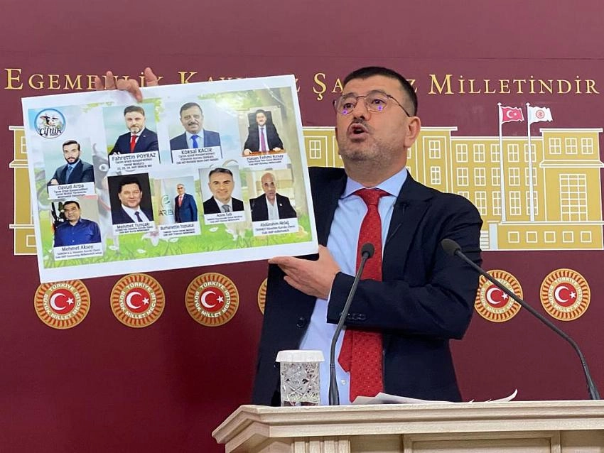 “Bu tefeciden daha beter kurumun başında kimler var? Tarım Kredi Kooperatiflerinin neredeyse tüm yönetim kurullarında AKP’nin vekil eskileri var. Bir milyon 100 bin çiftçinin ortak olduğu, amacı çiftçileri desteklemek olan Tarım Kredi Kooperatifleri Birliği diğer tüm kurumlar gibi AKP’nin çiftliği olmuş durumda. Bu çiftliğin baş tefecisi, yani birliğin genel müdürü Eski AKP Milletvekili Fahrettin Poyraz. Bu şahıs hem Genel Müdür hem de tam sekiz şirketin daha Yönetim Kurulu Başkanı. Tarım Kredi Holding A.Ş., Gübre taş, Gübre taş Maden A.Ş., TK Sera A.Ş., Bereket Sigorta A.Ş., Bereket Emeklilik ve Hayat A.Ş., Bereket Katılım Sigorta A.Ş. ve Bereket Katılım Hayat A.Ş'nin de Yönetim Kurulu Başkanlığı'nı yapıyor. Çiftçi icralık, çiftçi kan ağlıyor; bu şahıs orada tam sekiz şirketten maaş alıyor. Bakın, birçok milletvekilimiz Tarım ve Orman Bakanı Bekir Pakdemirli’ye soru yöneltti. Tarım Kredi Kooperatiflerine atanan AKP eski vekillerinin buralardan ne kadar maaş ve huzur hakkı aldığını sorduk. Yanıt ne oldu biliyor musunuz: “ticari sır”. İşine geleni ifşa eder, işine gelmeyene sır derler. Aşıları getiren firma sır,