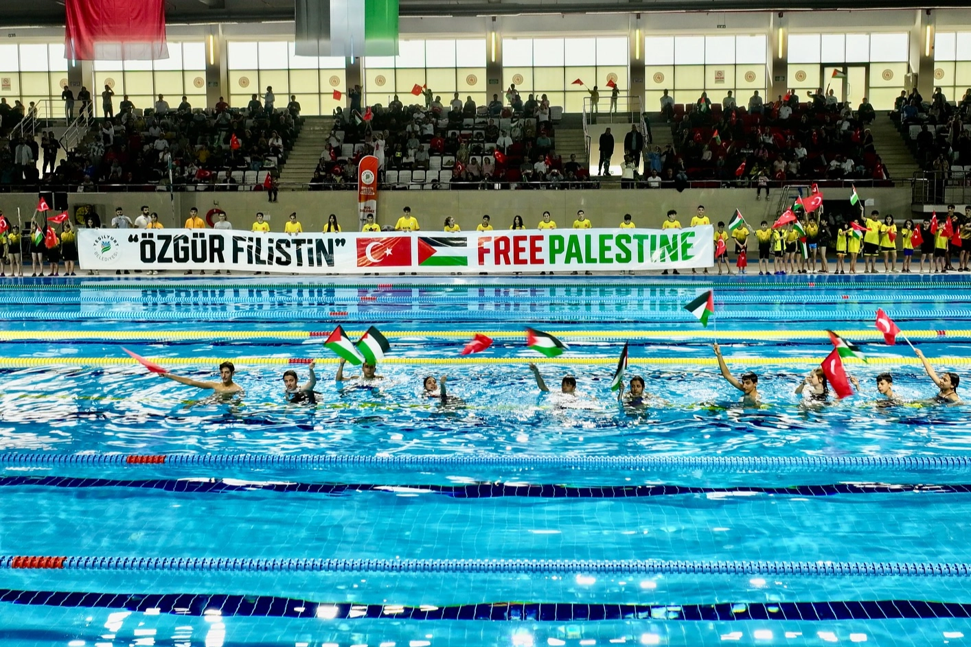 Yarışlarda sporcular dereceye girebilmek için kıyasıya mücadele ederken, dostluk ve dayanışma ruhu her an hissedildi. Tribünlerde dalgalanan Türk ve Filistin bayrakları eşliğinde, yarışlar boyunca hem havuzda hem de tribünlerde unutulmaz ve duygusal anlara tanıklık edildi.