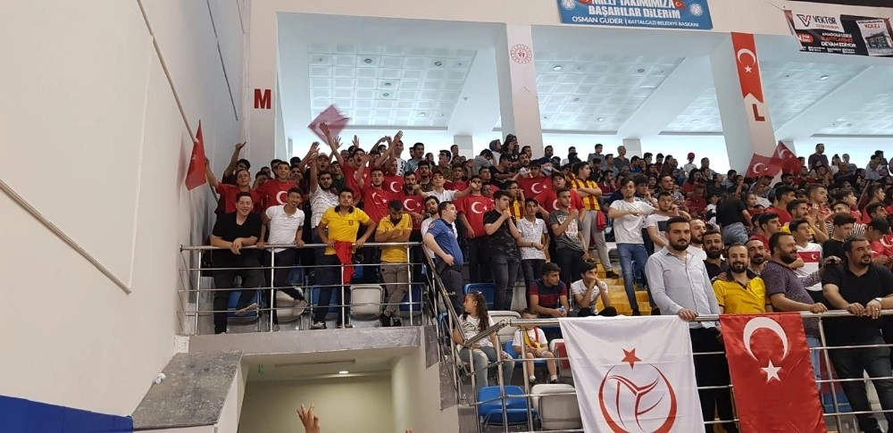 Geçtiğimiz günlerde yeniden kuruluşunu gerçekleştiren Malatyaspor Taraftarlar Derneği, A Milli Erkek Voleybol Takımı’nın Malatya’da oynadığı maçta tribünlerde yerini aldı.2019 CEV Avrupa Altın Ligi’nde Malatya’da Slovakya ile karşılaşan A Milli Erkek Voleybol Takımı’nı desteklemek için tribünlerde yerini alan Malatyaspor Taraftarlar Derneği, karşılaşma boyunca ay-yıldızlılar lehine tezahüratlarda bulundu.Derneği basın sözcüsü Av. Ömer Şengün, Malatya’da ilk kez bir milli maçın oynanmasından dolayı taraftarlar olarak mutlu olduklarını söyleyerek, bu organizasyonda emeği geçenleri kutladı. Karşılaşmayı net bir skorla kazandıkları için de sevinçli olduklarını belirten Şengün, “Milletçe bu galibiyet ve coşkuya en çok ihtiyacımızın olduğu bu günlerde bizleri sevindiren Türkiye Voleybol Erkekler Milli Takımı’nı kutluyorum” dedi.Dernek olarak ilk organizasyonlarını bu milli maçta yaptıklarını da dile getiren Şengün, “Malatyalı olan Türkiye Voleybol Federasyonu Başkanı Mehmet Akif Üstündağ’ı kutluyoruz. Malatya’yı unutmayıp bu güzel organizasyonla bizleri onura ettikleri için kendisini Malatyaspor Derneği olarak kutluyoruz, başarılarının devamını diliyoruz” diye konuştu.