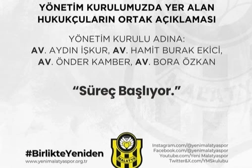 Kulübümüzün mevcut ve gelecekteki menfaatlerinin korunması adına bu süreç en yüksek hassasiyet ve titizlikle yönetilecek; atılacak her adımda, Malatya şehrinin ve taraftarlarımızın vicdanı gözetilecektir. Saygıyla duyururuz."