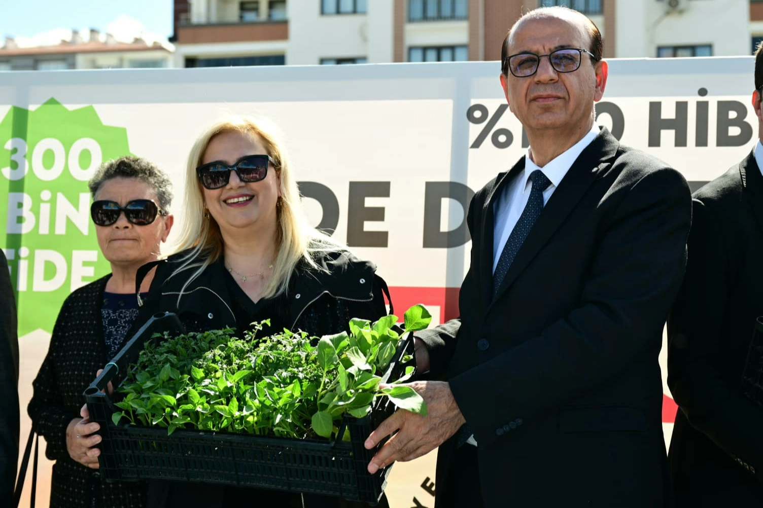 Protokol konuşmalarından sonra 300 bin sebze fidesi, çiftçilere teslim edildi.