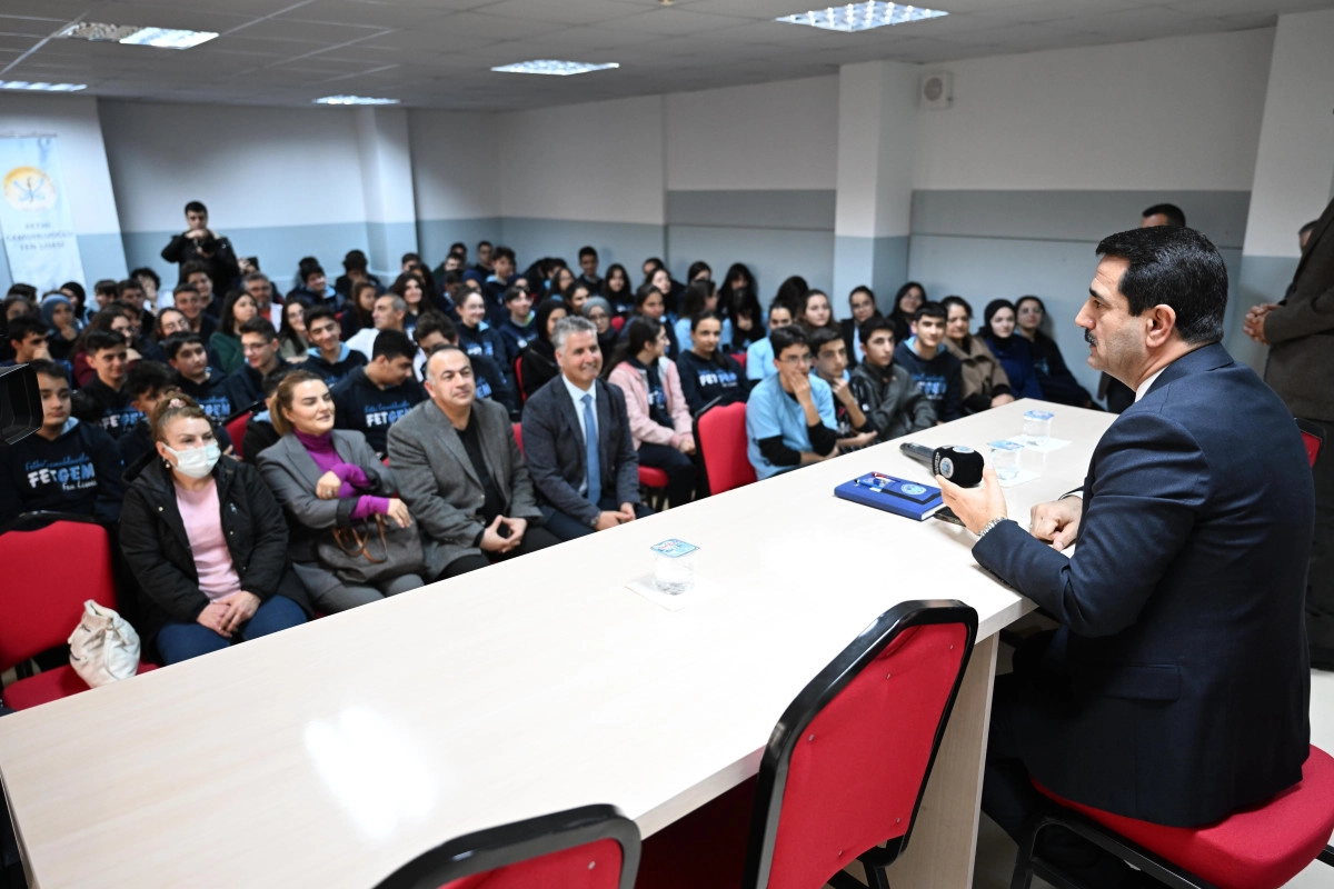 Fetih Gemuhluoğlu Fen Lisesi konferans salonunda gerçekleşen söyleşide başarıya giden yolda hedef belirlemenin önemine vurgu yapan Başkan Taşkın, öğrencilerin meslek seçimlerini ve gelecek planlarını şansa bırakmamaları gerektiğini söyledi. “Tercih zamanı geldiğinde hangi bölümü seçeceğiniz çoktan belli olmalı. Erken karar vermek, sizi daha bilinçli ve kararlı hale getirir. Büyük hedefler koymalı ve bu doğrultuda disiplinli çalışmalısınız” dedi. Taşkın, öğrencilerin kendilerini tanımaları, ilgi alanlarını belirlemeleri ve bu doğrultuda adımlar atmaları gerektiğini ifade etti.