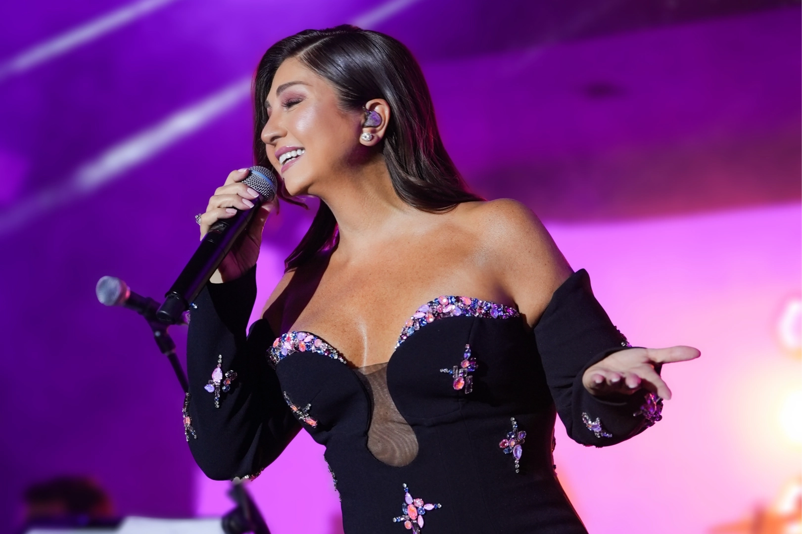 Sahnedeki zarafeti ve ışıltısıyla izleyicilerden tam not alan sanatçı, repertuarıyla da gönüllere dokundu.