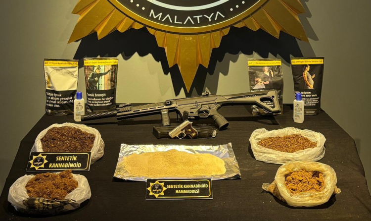 Malatya Emniyet Müdürlüğünden yapılan açıklamada "Narkotik Suçlarla Mücadele Şube Müdürlüğü ekiplerimizce ‘torbacı’ olarak tabir edilen sokak satıcısı şahıslara yönelik 30 Mart- 1 Nisan tarihleri arasında fiziki takiple yapılan çalışmalar neticesinde 13 ikamet, 1 işyeri, 1 araç ve 14 şahsın üzerinde yapılan aramalarda; 13.506 adet Sentetik Ecza, 1.639 gram Esrar maddesi, 1.644 adet Ecstasy hap, 1.090 gram A-M Sentetik Kannobinoid Hammaddesi (109 Kg Sentetik Kannabinoid maddesi elde edilebilir), 838 gram Sentetik Kannabinoid maddesi, 20 gram Metamfetamin maddesi, 3 adet Ruhsatsız Tüfek, 1 adet Ruhsatsız Tabanca, 15 kg Sentetik Kannobinoid yapımında kullanılan Kıyılmış Tütün, 400 ml Sentetik Kannobinoid yapımında kullanılan Aseton Maddesi ele geçirilmiştir" denildi.