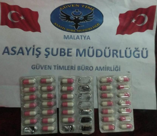 · Turgut Temelli Caddesinde bir şahıstan 33 adet hap ele geçirilmiştir.