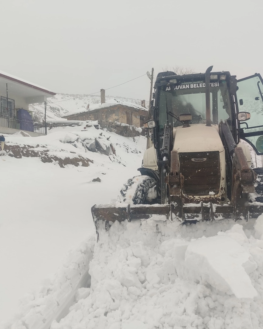 Arguvan ilçesinde kar yağışı nedeniyle kapanan mahalle ve sokaklarda kar temizliği başladı.