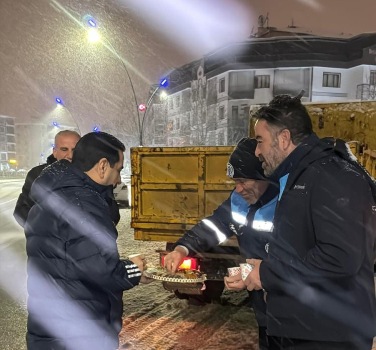 Malatya’da etkisini artıran kar yağışı sonrası Battalgazi Belediyesi ekipleri ilçe genelinde kar küreme ve tuzlama çalışmalarını aralıksız sürdürürken, Battalgazi Belediye Başkanı Bayram Taşkın da gece saatlerinde sahaya indi. Orduzu Bahçebaşı başta olmak üzere birçok noktada görev yapan ekiplerle bir araya gelen Başkan Taşkın, çalışmaları yerinde inceleyerek personelle sohbet etti ve ekiplere sıcak çay ikramında bulundu.
