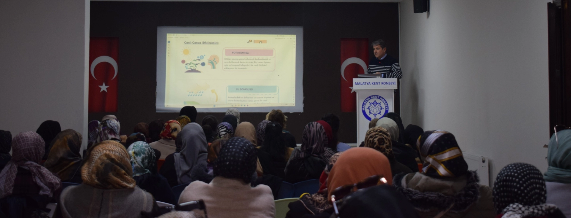 Malatya Kent Konseyi’nin kurumlar arası işbirliğiyle gerçekleştirdiği Kadın Akademisi projesi kapsamında, çevre bilincini artırmak ve iklim değişikliğiyle mücadeleye dikkat çekmek amacıyla “Çevre ve İklim Değişikliği Okuryazarlığı” konulu program düzenlendi.