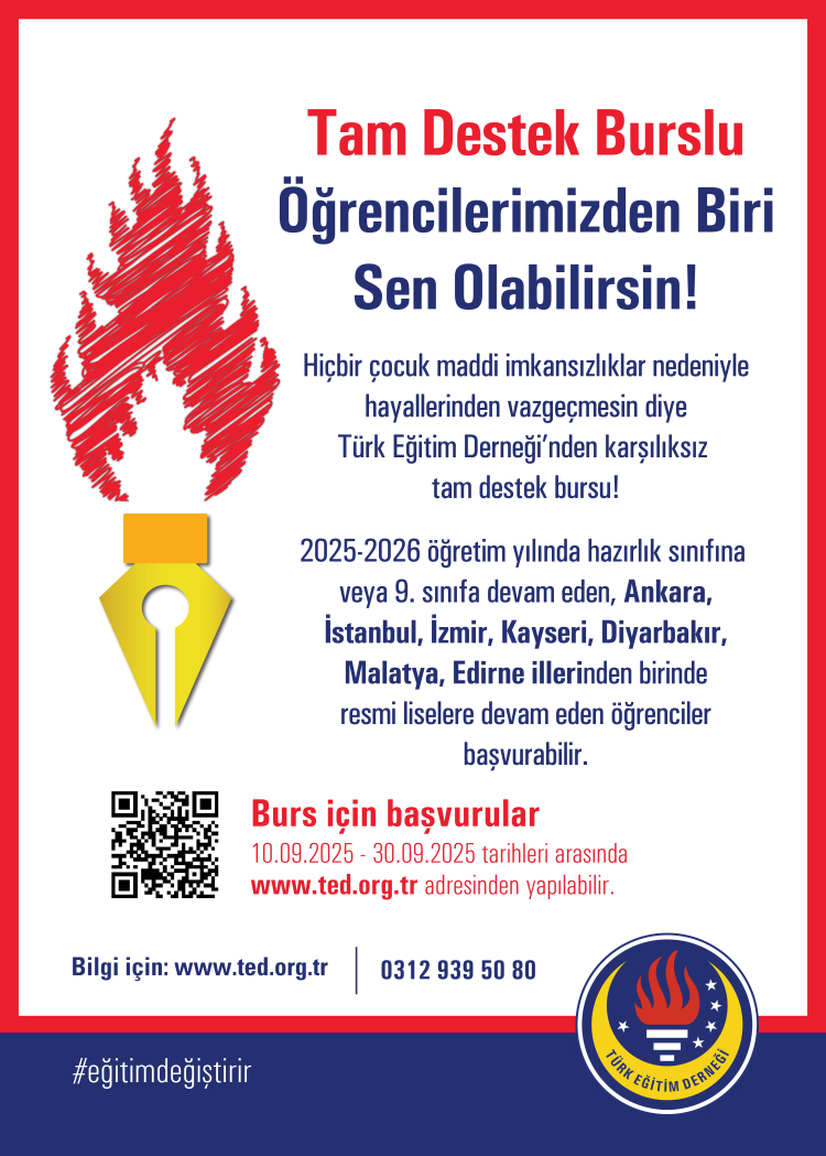 • Başvurular 10-30 Eylül 2025 tarihleri arasında www.ted.org.tr adresinden yapılacaktır.