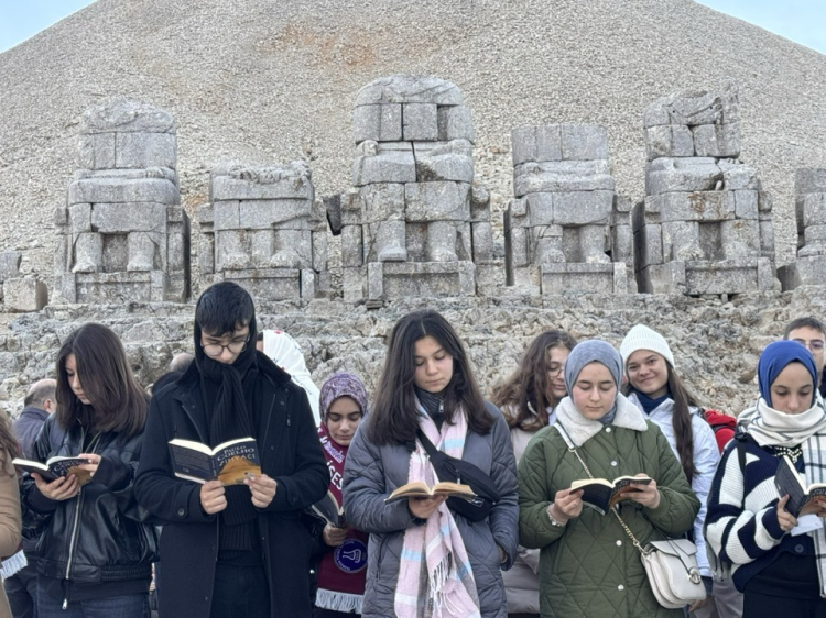 Öğrenciler bu kez Malatya'da ikinci kitap söyleşisinde kitap okuma farkındalığı oluşturmak için tarihi mekan olarak Nemrut Dağı’nı seçti. Her zaman, her yerde ve her alanda kitap okunabileceğini göstermek adına önemsenen etkinliğe ülkemizin 7 coğrafi bölgesinden ilçemize gelen 35 öğrenci katıldı.